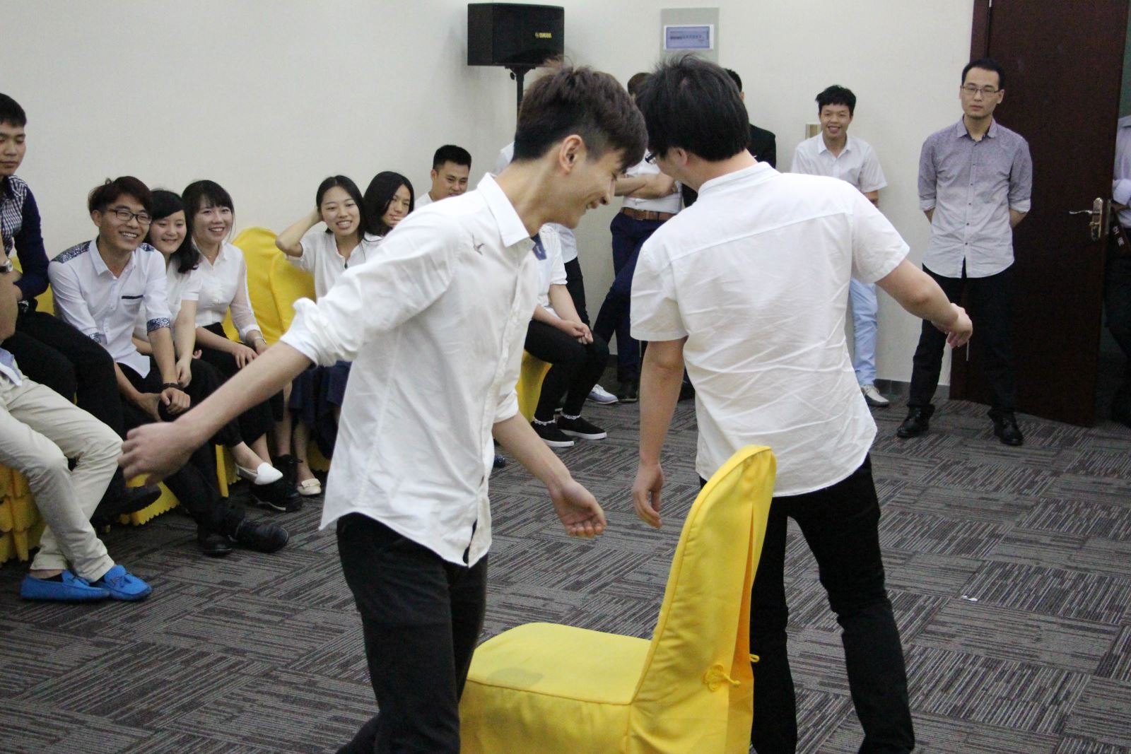 重大節(jié)日慶?;顒?,公司組織員工進行慶祝活動,大家一起做游戲,緩解了工作的疲勞,每個人都能參與到活動中來,幾人一組,男女搭配,大家玩的開心,比平時更加注重團結(jié)友善,開心的玩在一起。